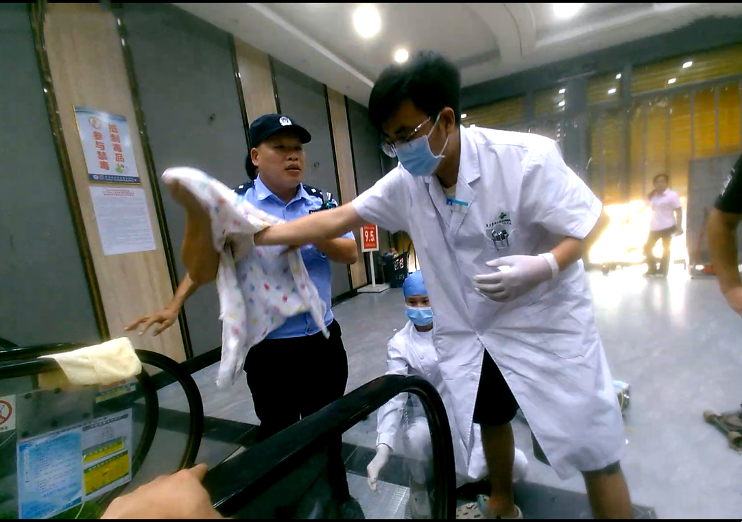 在民警、消防救援人員、醫(yī)護(hù)人員、電梯公司及商場(chǎng)管理人員的協(xié)同配合下,被困小孩于16時(shí)許被成功救出,隨后第一時(shí)間被迅速送往遂溪縣第二人民醫(yī)院檢查治療。