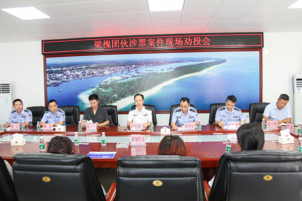 8月10日上午,市、縣兩級(jí)公安機(jī)關(guān)在遂溪縣江洪召開梁槐團(tuán)伙涉黑案件現(xiàn)場(chǎng)勸投會(huì),通報(bào)辦案成果,表明公安機(jī)關(guān)強(qiáng)力推進(jìn)掃黑除惡專項(xiàng)斗爭(zhēng)的決心和信心,對(duì)涉案人員家屬進(jìn)行溫情勸投,爭(zhēng)取黨委政府和法律的寬大處理。湛江市公安局黨委副書記、常務(wù)副局長周岳林,坡頭區(qū)人民法院刑庭副庭長龍志軍,江洪鎮(zhèn)委書記鄭高科出席了會(huì)議。會(huì)議由遂溪縣副縣長、公安局長梁虎泉主持。