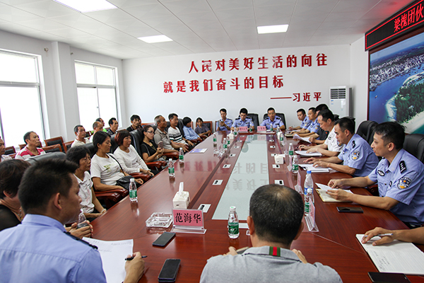 會(huì)上,湛江市公安局刑警支隊(duì)一大隊(duì)大隊(duì)長蘇繼才通報(bào)了梁槐團(tuán)伙涉黑案件辦理情況,通報(bào)了在逃人員情況。龍志軍法官就投案自首等法律政策予以解讀。法官、警官認(rèn)真傾聽涉案人員家屬的心聲,一一為他們答疑解惑。