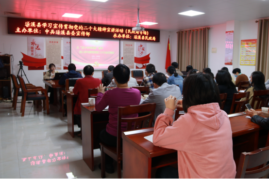 為全面學(xué)習(xí)貫徹落實黨的二十大精神,進一步掀起學(xué)習(xí)宣傳貫徹黨的二十大精神熱潮,引導(dǎo)我局全體干部職工切實把思想和行動統(tǒng)一到黨的二十大精神和黨中央決策部署上來,根據(jù)中央及省委、市委、縣委關(guān)于學(xué)習(xí)宣傳貫徹黨的二十大精神的工作部署,我局于2023年2月22日上午9點在局機關(guān)二樓會議室組織開展學(xué)習(xí)貫徹黨的二十大精神專題宣講會,邀請縣委黨校講師余卓玲進行專題授課。我局全體干部職工及各下屬單位負責(zé)人參加。
