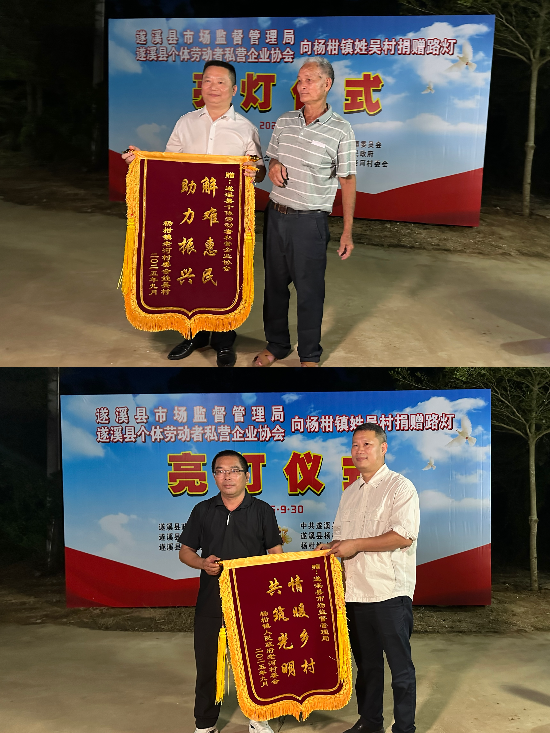 9月30日晚上,在楊柑鎮(zhèn)姓吳村文化廣場上,隨著52盞嶄新的太陽能路燈次第亮起,村民們歡呼雀躍、掌聲雷動。這場由遂溪縣政協(xié)牽線搭橋、遂溪縣市場監(jiān)管局統(tǒng)籌協(xié)調、遂溪縣個體私營企業(yè)協(xié)會積極響應的姓吳村路燈亮燈儀式正式啟動。