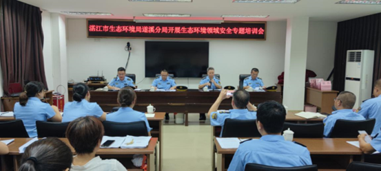 為切實(shí)提升我局生態(tài)環(huán)境領(lǐng)域安全生產(chǎn)及環(huán)境應(yīng)急管理工作水平,強(qiáng)化環(huán)境風(fēng)險(xiǎn)隱患排查和化解,提高應(yīng)對突發(fā)環(huán)境事件能力,6月28日,湛江市生態(tài)環(huán)境局遂溪分局開展生態(tài)環(huán)境領(lǐng)域安全專題培訓(xùn)會。會上傳達(dá)了我局印發(fā)《遂溪縣生態(tài)環(huán)境領(lǐng)域重大突發(fā)環(huán)境事件隱患專項(xiàng)排查整治2023行動實(shí)施方案》,研究解讀了企業(yè)突發(fā)環(huán)境事件隱患排查和治理工作指南,學(xué)習(xí)生態(tài)環(huán)境領(lǐng)域重大事故隱患判斷標(biāo)準(zhǔn)和重點(diǎn)執(zhí)法檢查事項(xiàng)。隨后,全體執(zhí)法人員觀看了新聞聯(lián)播,學(xué)習(xí)王偉中省長主持召開省政府黨組(擴(kuò)大)會議講話精神, 深入學(xué)習(xí)貫徹習(xí)近平總書記關(guān)于安全生產(chǎn)的重要批示精神。最后丘維華副局長強(qiáng)調(diào):要按照 “三個(gè)必須”和 “一崗雙責(zé)”等相關(guān)要求,對生態(tài)環(huán)境風(fēng)險(xiǎn)隱患能夠進(jìn)一步強(qiáng)化排查并有效防范化解,對環(huán)境應(yīng)急管理工作能夠進(jìn)一步規(guī)范并切實(shí)提升,堅(jiān)決維護(hù)生態(tài)環(huán)境安全,每名執(zhí)法人員要切實(shí)提高政治站位,牢固樹立環(huán)境安全理念,嚴(yán)格落實(shí)各項(xiàng)生態(tài)環(huán)境安全和環(huán)境應(yīng)急管理工作,確保全縣生態(tài)環(huán)境安全形勢持續(xù)穩(wěn)定向好,為建設(shè)平安遂溪作出新的更大貢獻(xiàn)!