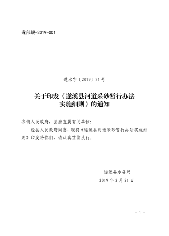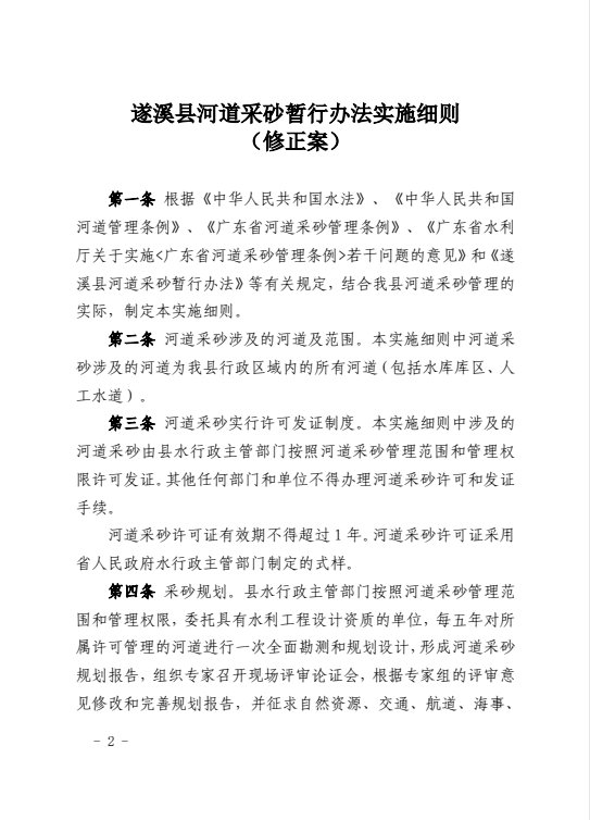關于公開征求《遂溪縣河道采砂暫行辦法實施細則(征求意見稿)》意見的公告