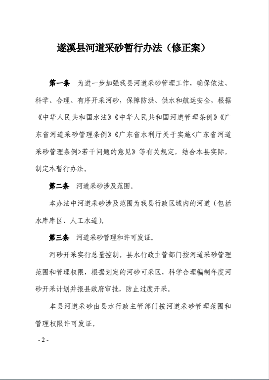 關(guān)于印發(fā)遂溪縣河道采砂暫行辦法(修正案)的通知