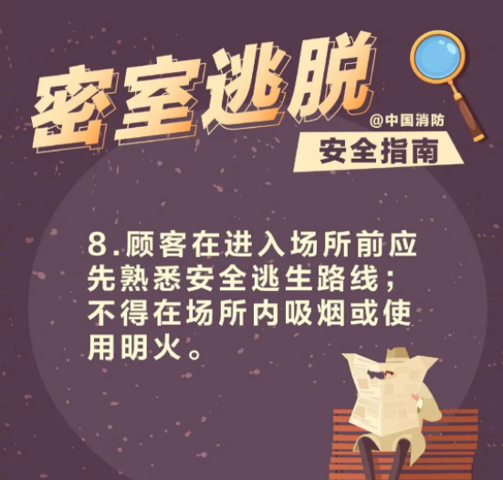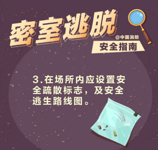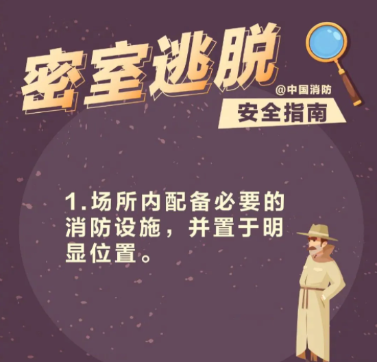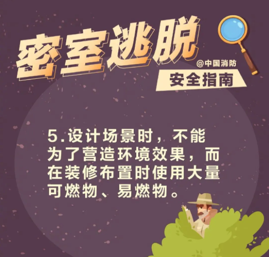 密室逃脫類場(chǎng)所還暗藏火災(zāi)風(fēng)險(xiǎn) 密室逃脫類場(chǎng)所危險(xiǎn)重重?密室逃脫類場(chǎng)所是指在特定受限空間場(chǎng)景內(nèi)進(jìn)行真人逃脫、劇本殺、情景劇類活動(dòng)的場(chǎng)所。從業(yè)單位為了增強(qiáng)“沉浸式”體驗(yàn),采用隔斷打造光線昏暗的密閉、狹小空間,大量使用燈光、音響、電子游戲道具等電器設(shè)備,大量使用布幡、塑料等可燃裝飾物,火災(zāi)風(fēng)險(xiǎn)高。 針對(duì)密室逃脫類場(chǎng)所火災(zāi)風(fēng)險(xiǎn)大的問題,應(yīng)急管理部消防救援局印發(fā)《密室逃脫類場(chǎng)所火災(zāi)風(fēng)險(xiǎn)指南(試行)》《密室逃脫類場(chǎng)所火災(zāi)風(fēng)險(xiǎn)檢查指引(試行)》,要求從業(yè)單位對(duì)照《風(fēng)險(xiǎn)指南》《檢查指引》自查自改,相關(guān)部門、單位嚴(yán)查嚴(yán)管,確保安全。 《風(fēng)險(xiǎn)指南》從起火風(fēng)險(xiǎn)、人員安全疏散風(fēng)險(xiǎn)、火災(zāi)蔓延擴(kuò)大風(fēng)險(xiǎn)三大方面,對(duì)密室逃脫類場(chǎng)所的火災(zāi)風(fēng)險(xiǎn)進(jìn)行了明確。《檢查指引》從消防安全管理、火災(zāi)危險(xiǎn)源、重點(diǎn)部位、應(yīng)急處置能力四大方面,對(duì)開展火災(zāi)風(fēng)險(xiǎn)檢查的重點(diǎn)內(nèi)容進(jìn)行了說明。