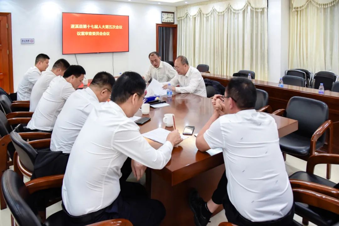 3月14日,縣十七屆人大五次會議召開議案審查委員會會議,審查大會期間代表提出的議案、建議??h人大常委會代主任、議案審查委員會主任委員陳輝主持會議,議案審查委員會成員出席會議。