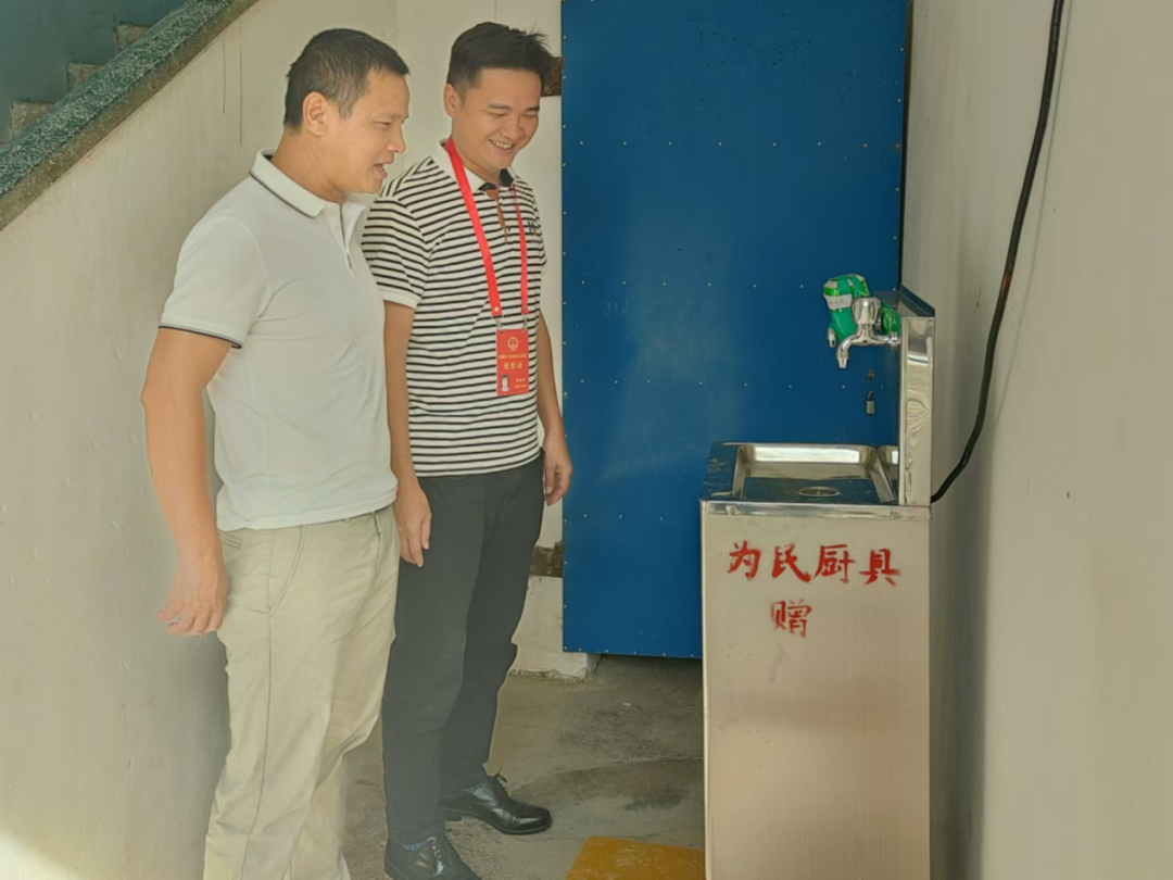 在開展接待、走訪群眾的過程中,有部分師生反映:“信嶺村委會轄區(qū)內(nèi)的信嶺小學(xué)沒有飲水機,老師只能自己煮水喝,學(xué)生從家里帶水喝,飲水很不方便?!边@一問題引起了附城鎮(zhèn)人大代表林迪仔的高度重視,他號召村內(nèi)鄉(xiāng)賢關(guān)注家鄉(xiāng)教育事業(yè)發(fā)展,發(fā)動王村仔村鄉(xiāng)賢王超文向信嶺小學(xué)捐贈直飲機一臺,幫助信嶺小學(xué)的師生們解決了飲水難題。