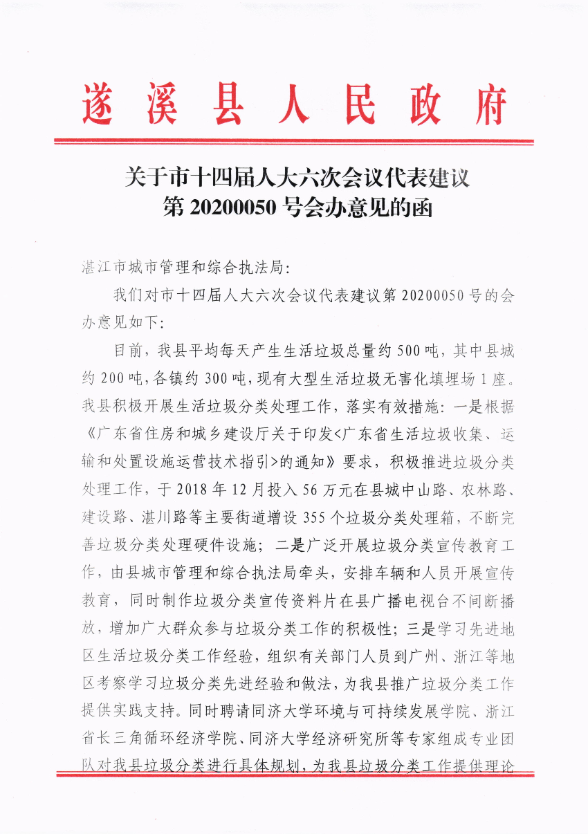 關(guān)于市十四屆人大六次會(huì)議代表建議第20200050號(hào)會(huì)辦意見的函