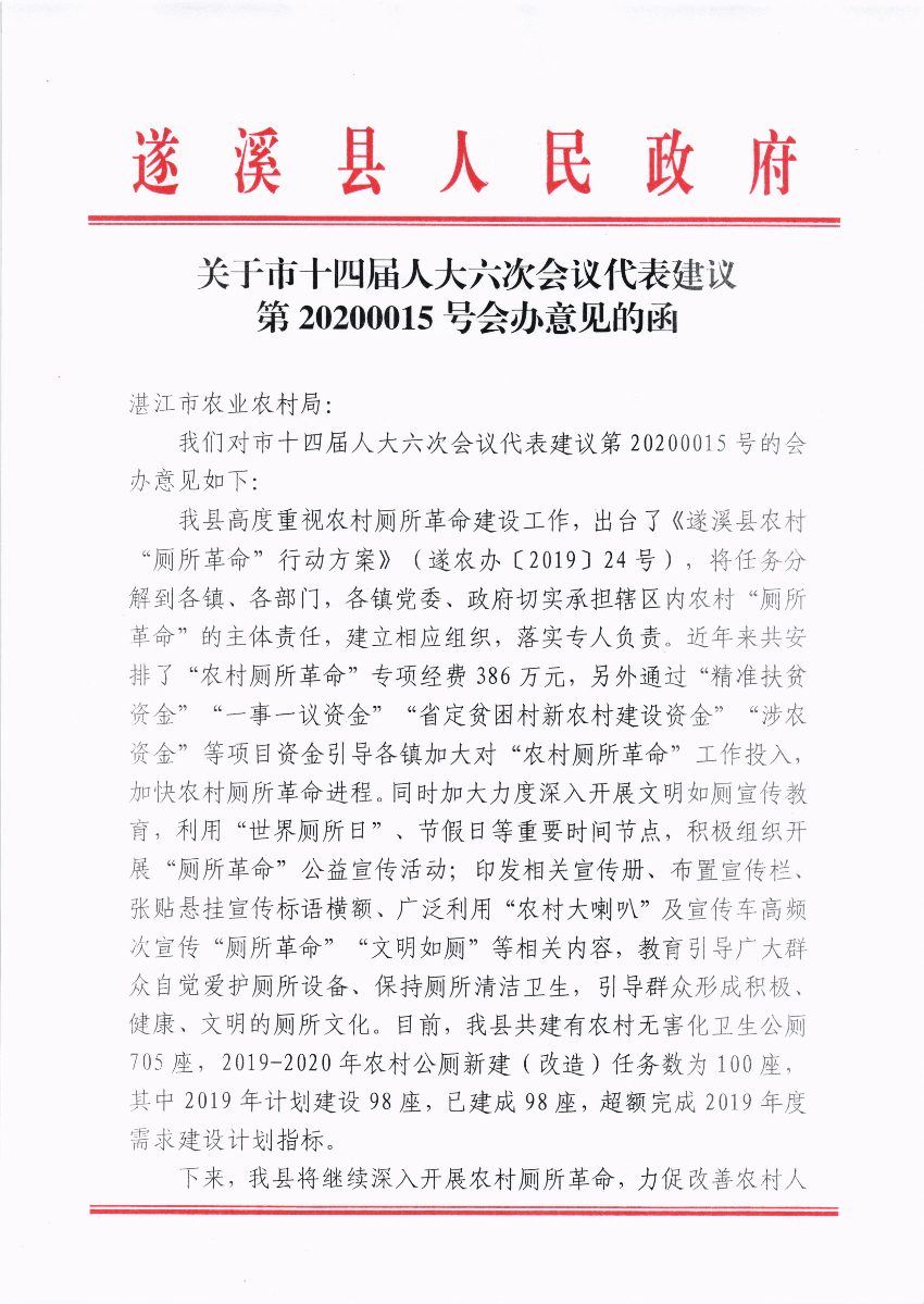 關(guān)于市十四屆人大六次會(huì)議代表建議第20200015號(hào)會(huì)辦意見(jiàn)的函