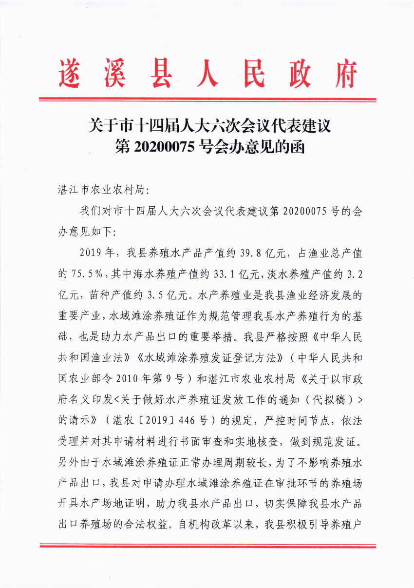 關(guān)于市十四屆人大六次會議代表建議第20200075號會辦意見的函