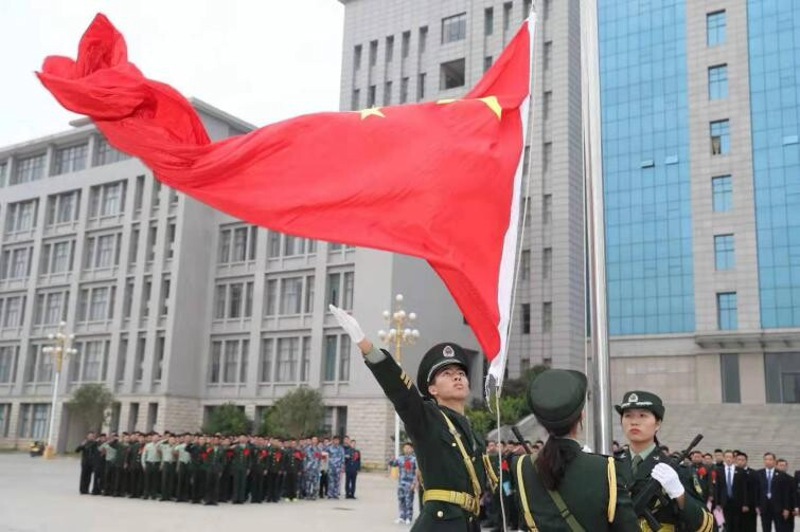 1月4日上午舉行升旗儀式,退役軍人們穿戴軍裝紅花,展現(xiàn)軍姿風(fēng)采。