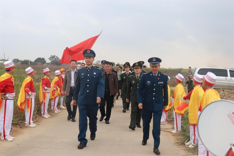 鑼鼓喧天,掌聲雷動。1月21日上午,在得知閱兵英雄、二等功臣郭子文要隨專程前來送喜報(bào)的部隊(duì)領(lǐng)導(dǎo)返鄉(xiāng)后,廣東省遂溪縣界炮鎮(zhèn)姓郭村的村民們自發(fā)在村路口夾道迎接。