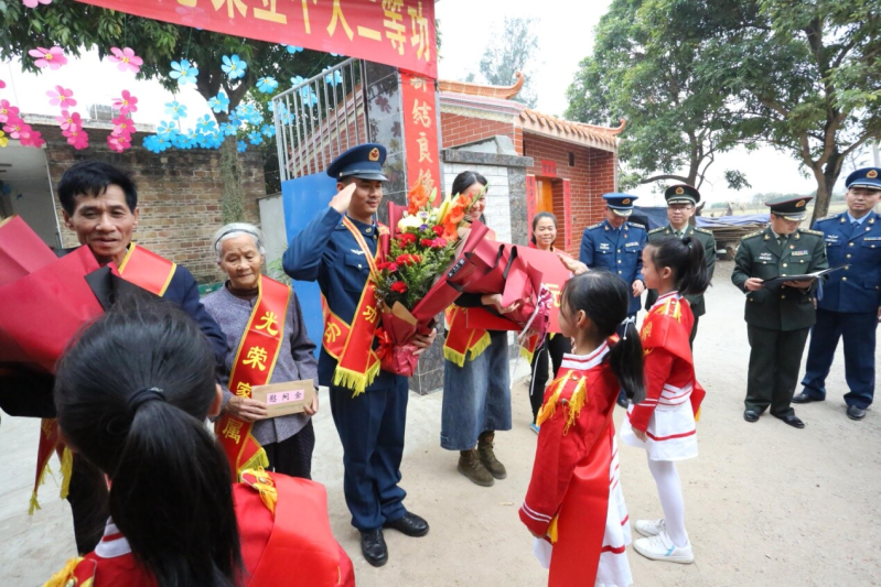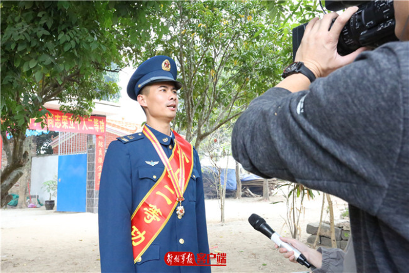 伴隨著陣陣鞭炮聲,在鄉(xiāng)親們的簇?fù)硐?,披上鮮紅的綬帶,郭子文在自己家門前接過獻(xiàn)花后,向家人敬了一個(gè)標(biāo)準(zhǔn)軍禮,現(xiàn)場響起了熱烈的掌聲和歡呼聲。