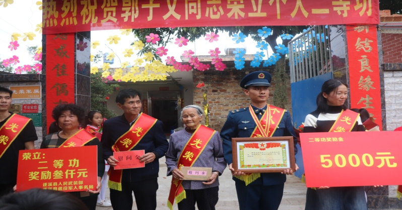 “我們是專程前來給郭子文送喜報(bào),他參加國慶大閱兵,表現(xiàn)突出,榮立了二等功!”部隊(duì)帶隊(duì)領(lǐng)導(dǎo)、南部戰(zhàn)區(qū)空軍雷達(dá)某旅副政委握著郭子文父母的手激動地說道。