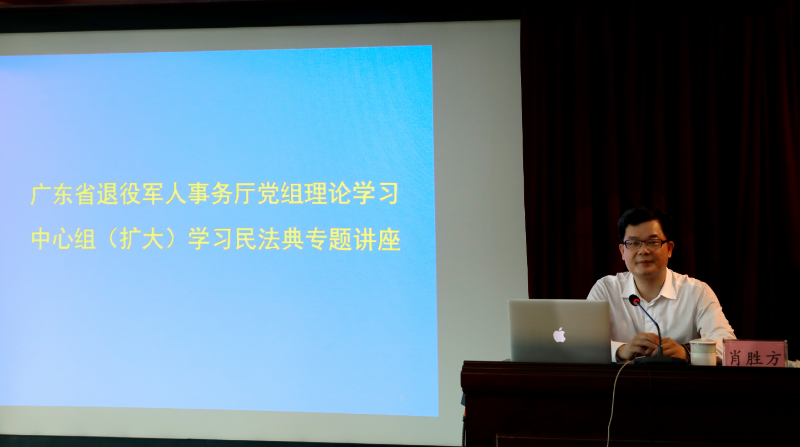 為深入貫徹落實(shí)習(xí)近平總書記在中央政治局第二十次集體學(xué)習(xí)的重要講話和全國(guó)兩會(huì)精神,牢固樹立堅(jiān)持以人民為中心的發(fā)展思想,提高全廳干部運(yùn)用法治思維和法治方式推動(dòng)退役軍人事務(wù)領(lǐng)域治理體系和治理能力現(xiàn)代化的水平,6月24日上午,廳黨組理論學(xué)習(xí)中心組(擴(kuò)大)組織專題學(xué)習(xí)民法典,特邀全國(guó)人大代表、廣東省律師協(xié)會(huì)會(huì)長(zhǎng)、廣東勝倫律師事務(wù)所主任肖勝方律師授課。廳黨組書記、廳長(zhǎng)陳小山等黨組成員、全體機(jī)關(guān)干部、直屬事業(yè)單位主要負(fù)責(zé)同志約70余人參加講座。講座由廳黨組成員、副廳長(zhǎng)韓明主持。