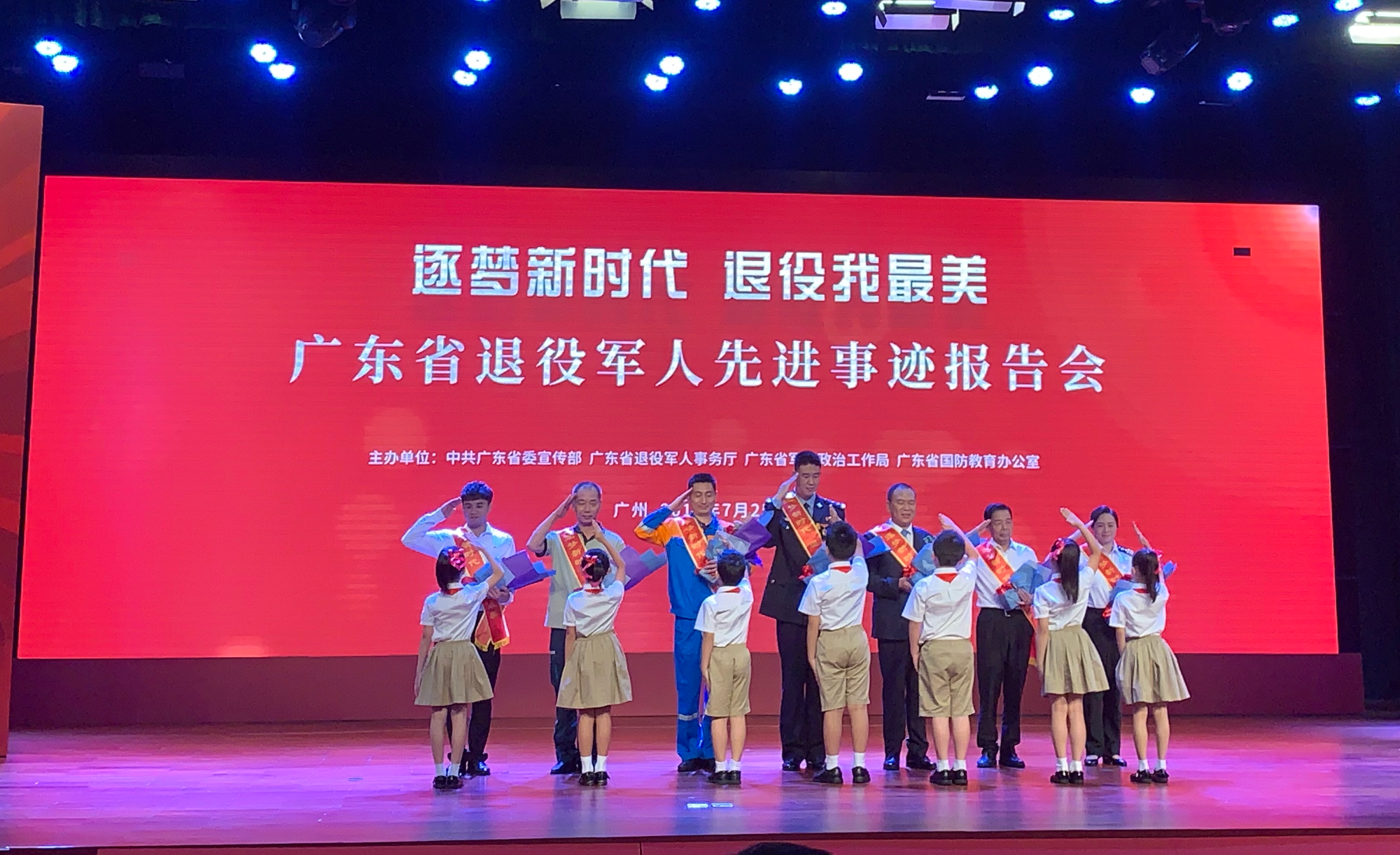 ??? 7月25日下午,由中共廣東省委宣傳部、廣東省退役軍人事務(wù)廳、省軍區(qū)政治工作局、省國防教育辦公室聯(lián)合舉辦的“逐夢新時代 退役我最美——廣東省退役軍人先進(jìn)事跡報告會”首場巡講在廣州隆重舉行。省委、省政府和省軍區(qū)有關(guān)領(lǐng)導(dǎo)出席報告會并會見了報告團(tuán)成員。