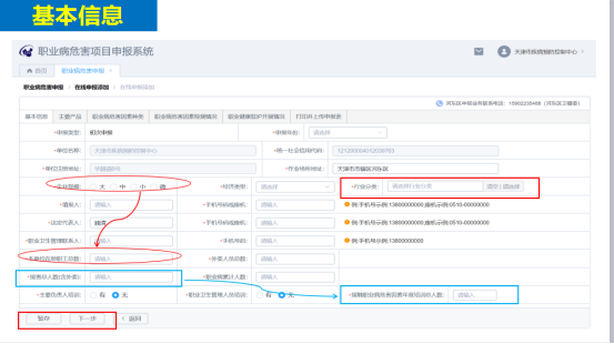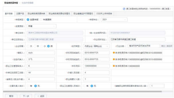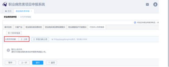 職業(yè)健康監(jiān)護開展情況編輯完成后,點擊“下一步”進入打印并上傳申報