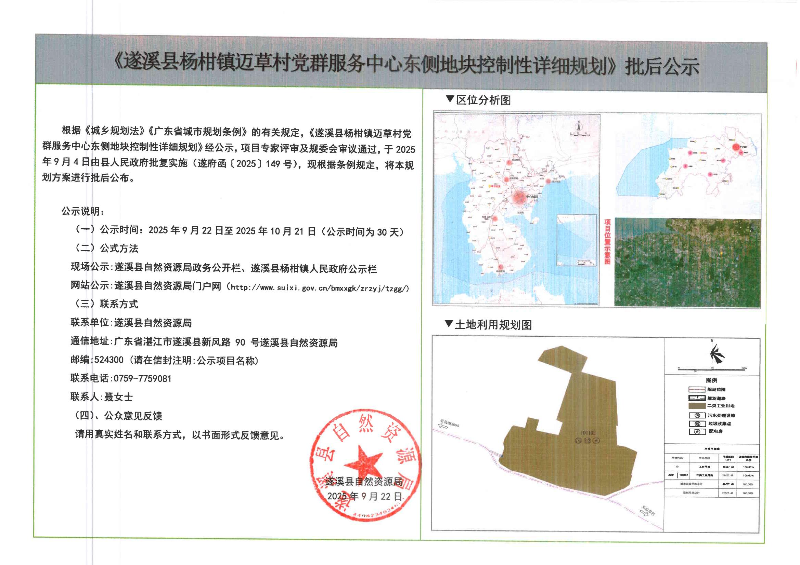 《遂溪縣楊柑鎮(zhèn)邁草村黨群服務中心東側(cè)地塊控制性詳細規(guī)劃》批后公示