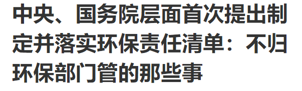 中央、國務(wù)院層面首次提出制定并落實(shí)環(huán)保責(zé)任清單:不歸環(huán)保部門管的那些事