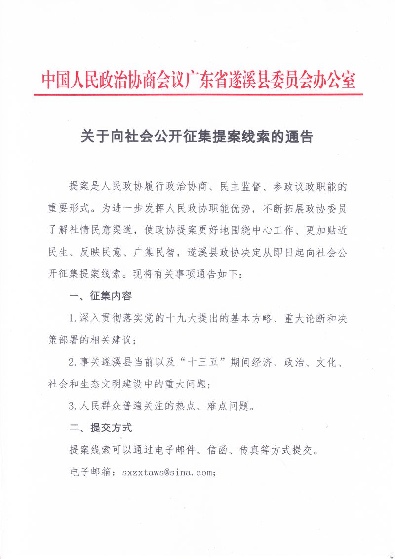 關(guān)于向社會公開征集提案線索的通告