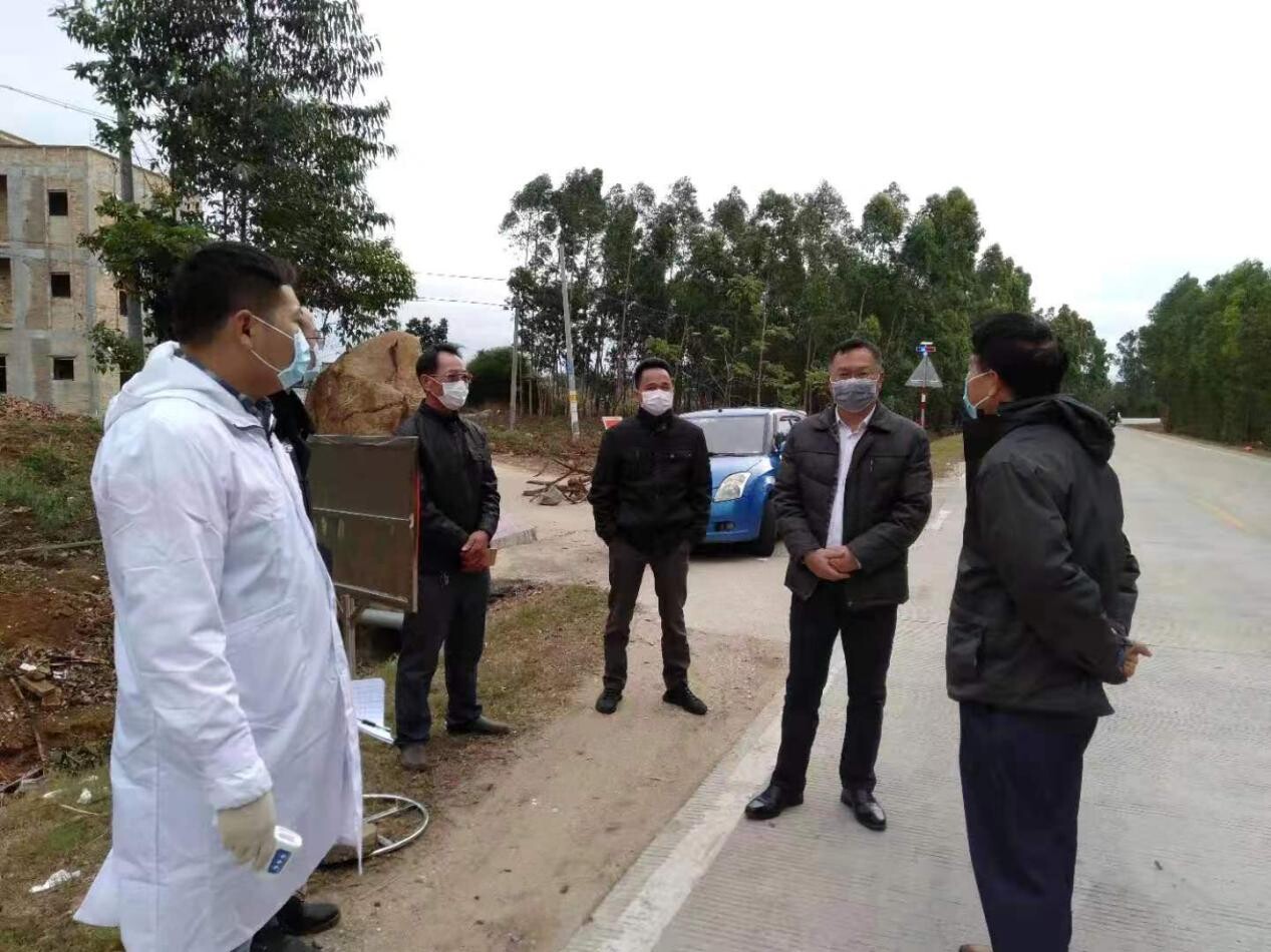鎮(zhèn)黨委李武副書(shū)記、吳偉壽副鎮(zhèn)長(zhǎng)、衛(wèi)生院周參院長(zhǎng)到大塘村委會(huì)指導(dǎo)新型冠狀病毒肺炎防控工作。