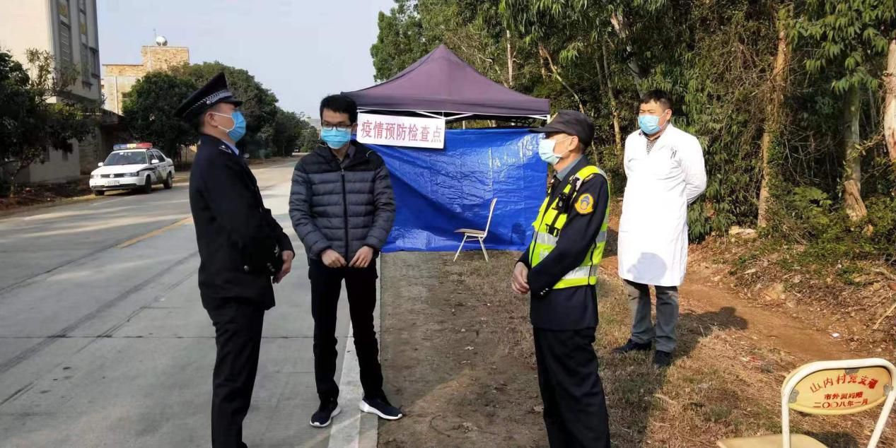 鎮(zhèn)長(zhǎng)詹仲茗、鎮(zhèn)黨委副書(shū)記李武到山內(nèi)疫情預(yù)防檢測(cè)點(diǎn)指導(dǎo)新型冠狀病毒肺炎防控工作。