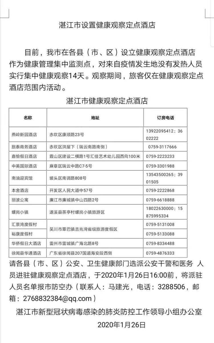 對(duì)滯留在湛江急需入住的疫區(qū)朋友,請(qǐng)大家引導(dǎo)他們按指定酒店入住。
