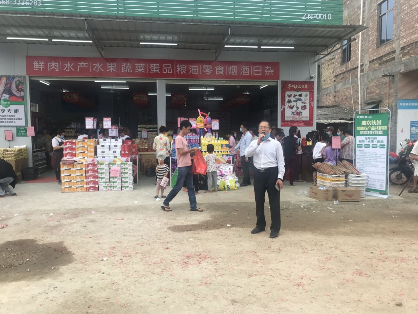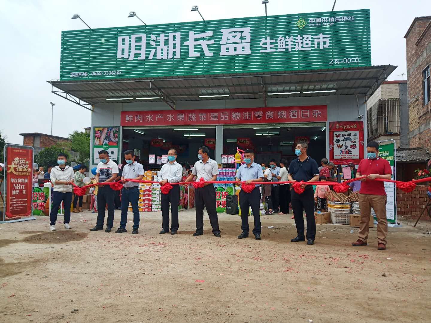 2020年5月1日上午,界炮鎮(zhèn)助農(nóng)扶貧超市“明湖長盈生鮮超市”隆重開業(yè)。遂溪縣原人大常委會副主任東秋仁,界炮鎮(zhèn)鎮(zhèn)長詹仲茗,廣州青年商會會長羅軍,鄉(xiāng)賢楊小劍、龐流出席開業(yè)儀式,為開業(yè)剪彩。