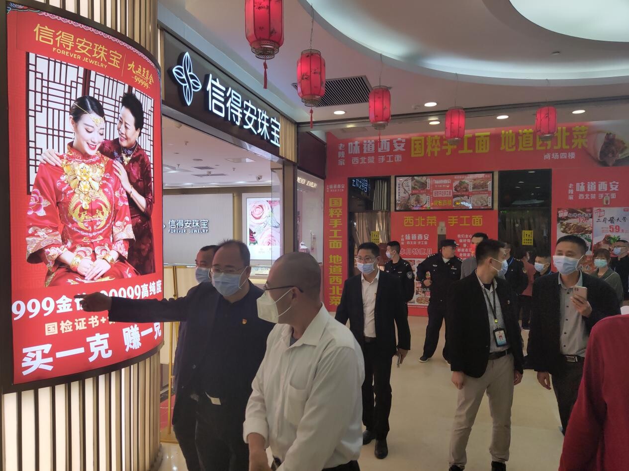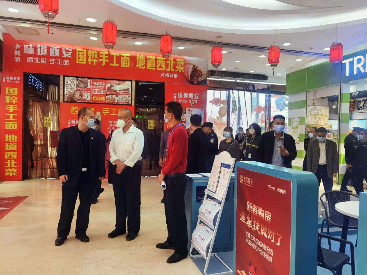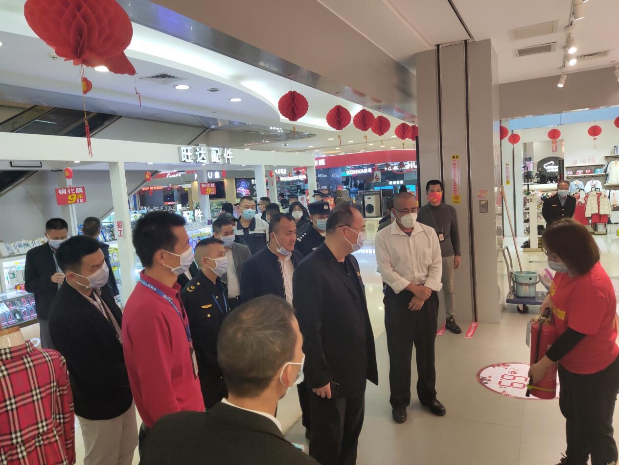 檢查組在全豐廣場(chǎng)檢查裝修材料防火要求是否達(dá)標(biāo)