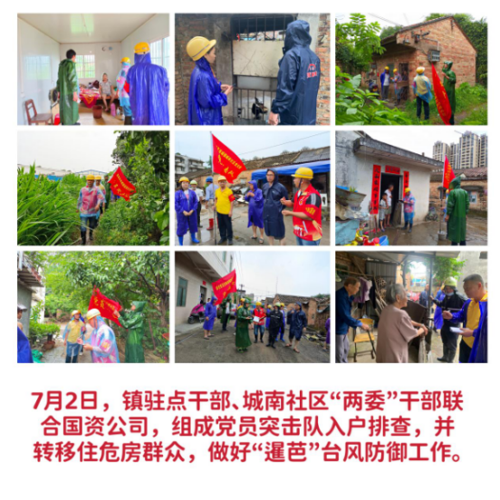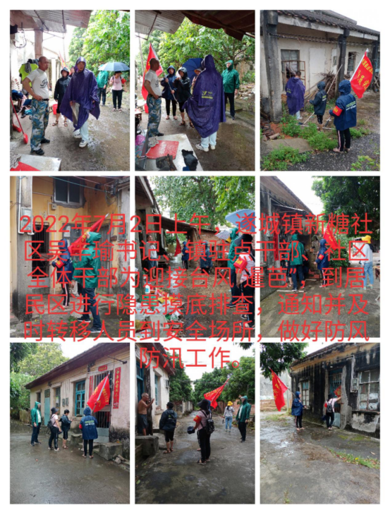 圖為鎮(zhèn)村干部到新糖居民區(qū)開展防風(fēng)防汛工作