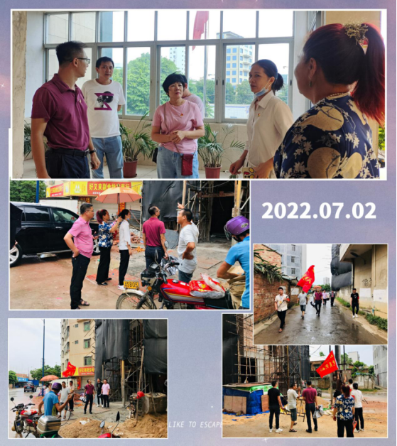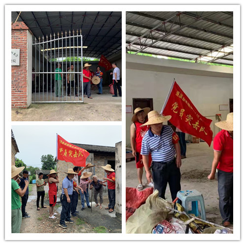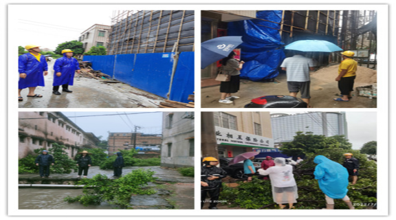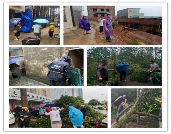 圖為組織發(fā)動(dòng)黨員干部,冒雨上街排查建筑工地和清除道路兩旁樹枝、坍塌圍墻,消除存在的隱患,方便群眾出行安全暢通。