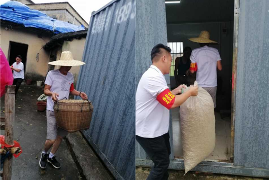 圖為陳村黨支部書記陳輝龍帶領(lǐng)兩委干部、黨員志愿者,為群眾緊急轉(zhuǎn)移搬運(yùn)生活物資,確保群眾財(cái)產(chǎn)安全。