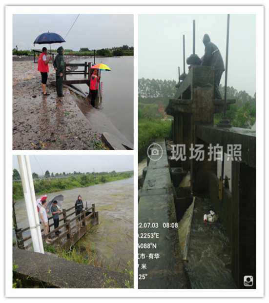 圖為劉劍縣長、黃堪遠(yuǎn)常委指導(dǎo)我鎮(zhèn)災(zāi)后泄洪排澇工作