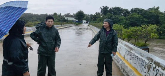 圖為縣委常委黃堪遠(yuǎn)同志、縣委人大常委會(huì)副主任揭盛同志指導(dǎo)防風(fēng)防汛工作