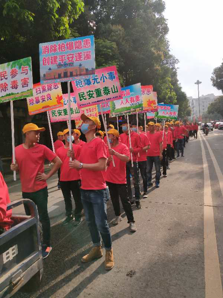 為進一步推進掃黑除惡和創(chuàng)建平安遂溪工作深入民心,在縣掃黑除惡辦的指導(dǎo)下,我鎮(zhèn)結(jié)合本土特色,充分利用年例期間外出務(wù)工人員集中返鄉(xiāng)、人流量集中的契機,以舉牌巡游、文藝演出等群眾喜聞樂見的方式廣泛開展掃黑除惡和創(chuàng)建平安遂溪工作宣傳活動,掀起新一輪宣傳熱潮,不僅增添了喜慶熱鬧氣氛,更引導(dǎo)廣大群眾樹立法治觀念,與法同行,使年例民俗傳統(tǒng)活動煥發(fā)出時代新味。