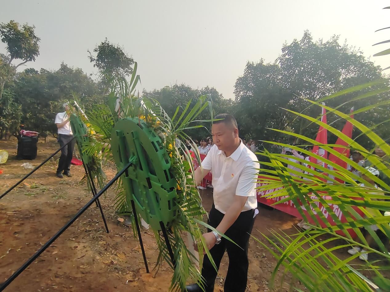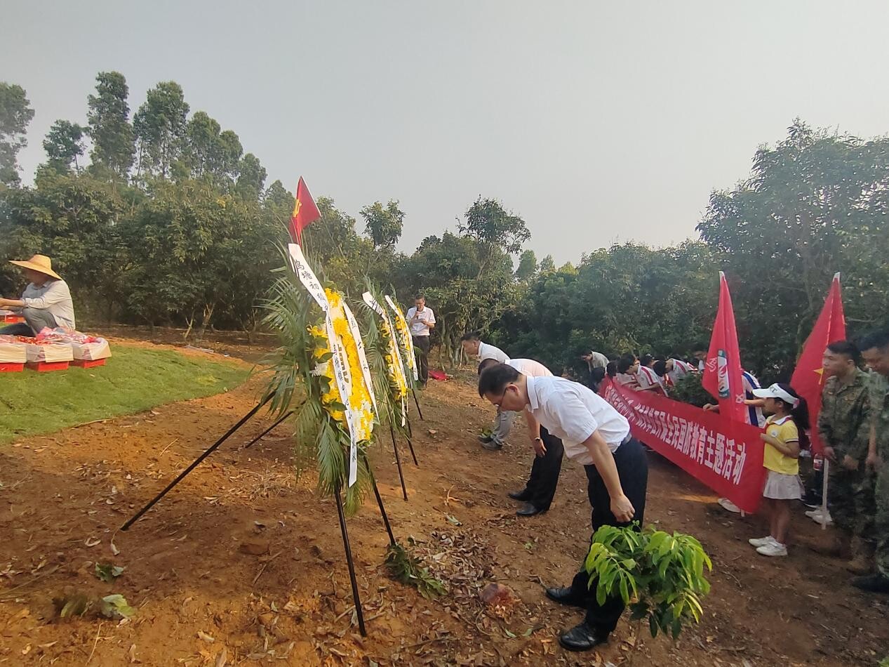 烏塘鎮(zhèn)黨委副書記、鎮(zhèn)長吳垂超、人大主席龐建華,湛川村支部書記黃民軍上前整理花籃綬帶,向烈士三鞠躬,表達(dá)我們最誠摯的敬意和感激之情。