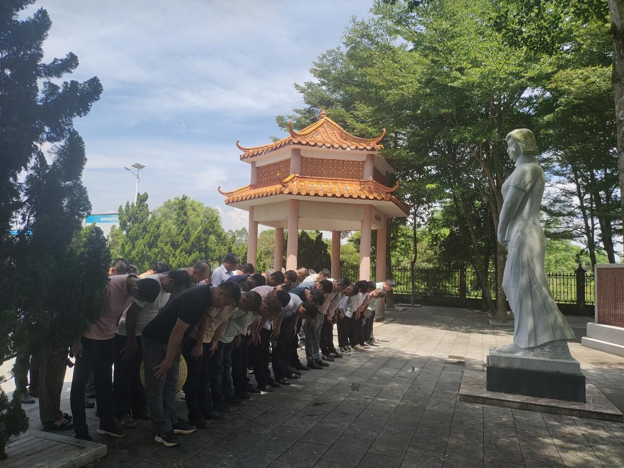 在洪文澤書(shū)記的帶領(lǐng)下,全體人員在鐘竹筠雕像面前三鞠躬,致敬革命先烈。