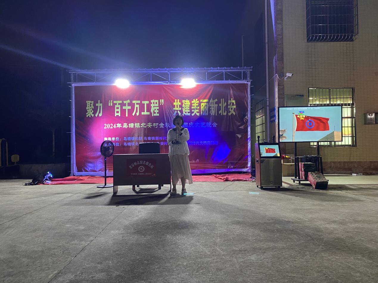 華夏盛世,舉國同慶。為慶祝中華人民共和國成立75周年,厚植家國情懷,增強(qiáng)黨群凝聚力,豐富村民的文化生活。10月1日晚上,烏塘鎮(zhèn)北安村在村廣場舉辦聚力“百千萬工程”,共建美麗新北安——金秋喜迎國慶文藝晚會暨北安村全域土地綜合整治現(xiàn)場推進(jìn)會。烏塘鎮(zhèn)有關(guān)領(lǐng)導(dǎo)同志、北安村干部、群眾等100多人共同觀看了晚會。