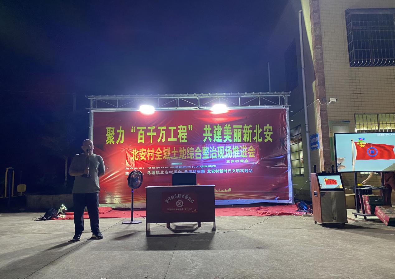 隨后,北安村黨支部書記陳李進(jìn)上臺致辭,他深情回顧了黨的輝煌歷史和偉大成就;講述了近年來北安村在烏塘鎮(zhèn)黨委、政府的關(guān)心和支持下,全村基本完成硬底化、污水處理設(shè)施完善、村委會辦公樓和球場、小公園等場所建設(shè)配套齊全,北安村面貌煥然一新;號召村民群眾感黨恩、跟黨走,并圍繞全域土地綜合整治、鄉(xiāng)村綠化、美麗庭院建設(shè)等政策進(jìn)行宣講,用通俗易懂的語言向村民講述政策實(shí)施的重要性、必要性、緊迫性,引導(dǎo)廣大群眾積極行動、率先垂范、主動作為,助力宜居宜業(yè)的和美鄉(xiāng)村建設(shè)。