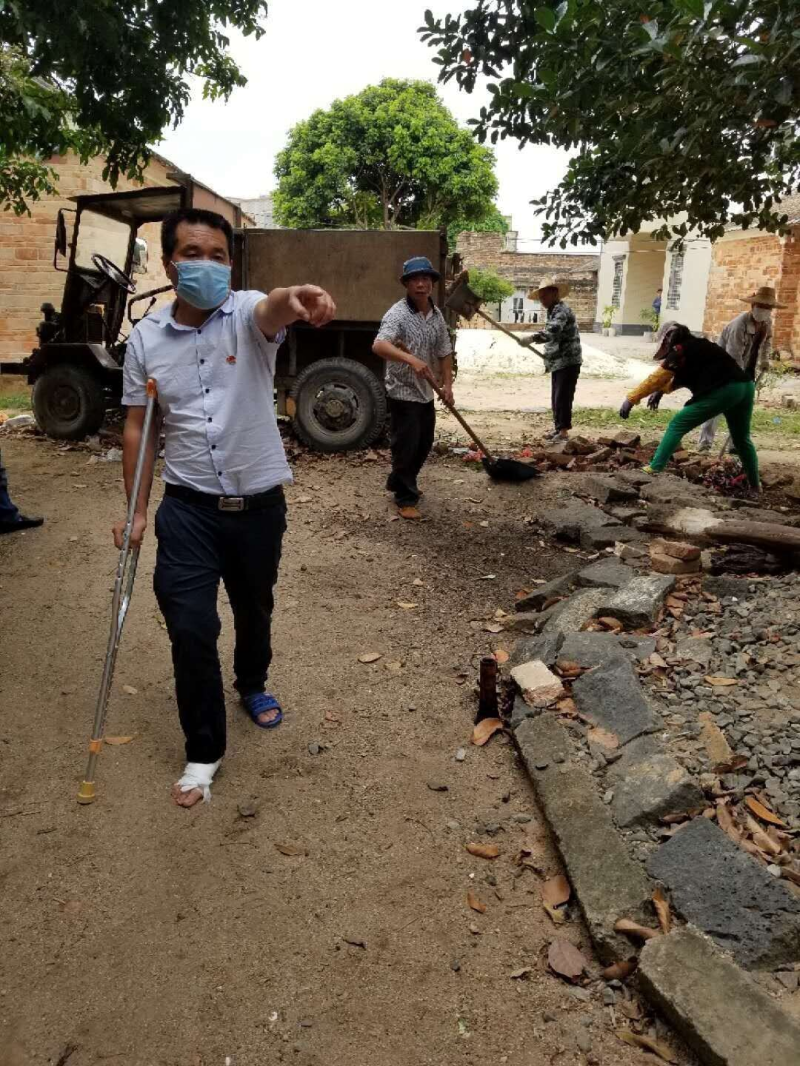 “醫(yī)生,我要出院,村里很多活等著我干!"剛做完腳部手術(shù),游建明便強(qiáng)烈要求出院回家,他心里念念不忘的是每條村是否過篩,每條巷是否過篩,每戶是否過篩。2月21日以來,游建明響應(yīng)鎮(zhèn)委鎮(zhèn)政府“村村過篩、巷巷過篩、戶戶過篩”的號召,帶領(lǐng)村黨員、干部和群眾連續(xù)22天不停不歇,投入到“家家干凈、村村整潔”農(nóng)村人居環(huán)境整治活動中。在3月13日上午,正在搬動石板的游建明由于用力過大、石板太重,來不及躲避被石板砸斷了兩條腳筋。大伙把他送進(jìn)了醫(yī)院。當(dāng)天下午剛動完手術(shù),心里掛著人居環(huán)境整治工作的游建明急著要出院。
