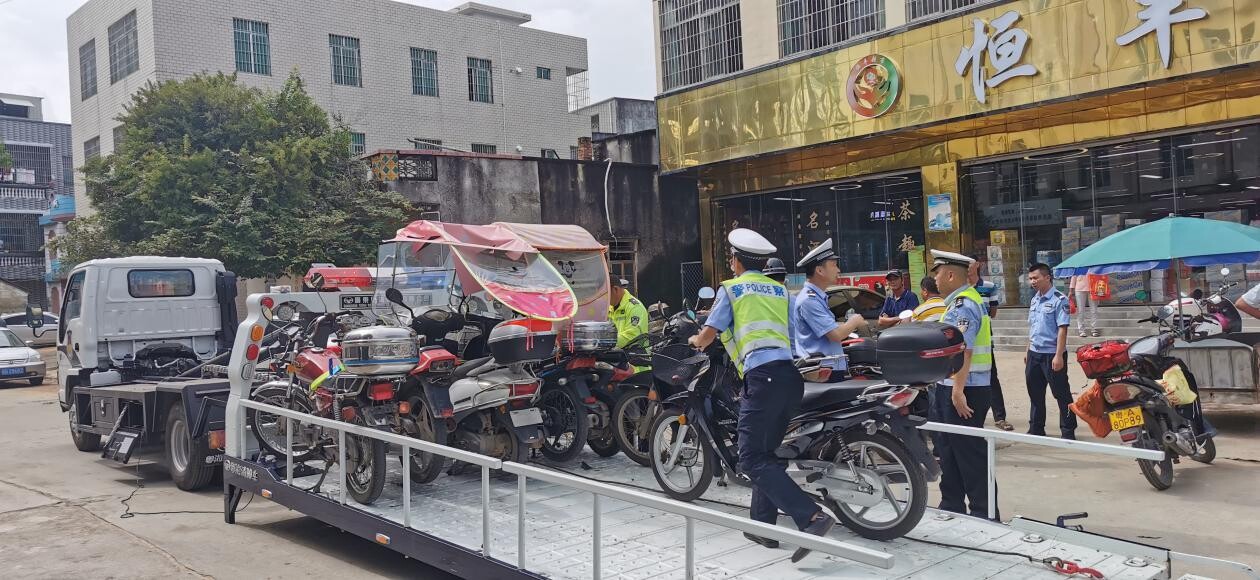 楊柑鎮(zhèn)委、鎮(zhèn)政府高度重視道路交通安全工作,著眼于楊柑鎮(zhèn)當前道路交通形勢,結(jié)合楊柑鎮(zhèn)實際情況,楊柑鎮(zhèn)人民政府進一步加大道路交通安全整治力度,持續(xù)推進。2020年08月21日,遂溪縣交警大隊易委員、曹軍、蔡華清副大隊長帶領(lǐng)機動巡邏中隊民警到楊柑鎮(zhèn)聯(lián)合楊柑中隊、派出所、鎮(zhèn)政府等多警種部門聯(lián)合開展交通安全整治行動,于行動中查扣問題摩托車33輛、三摩2輛,查處電動車摩托車各類違法行為25起、拘留無證駕駛摩托車2起,勸導(dǎo)教育群眾80余人。