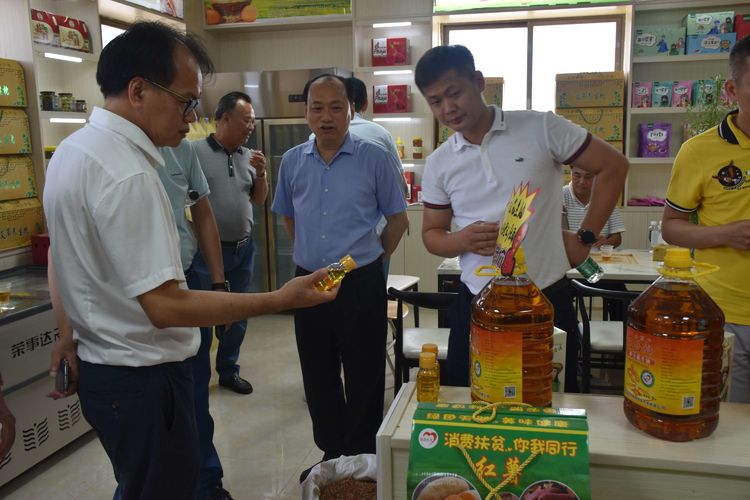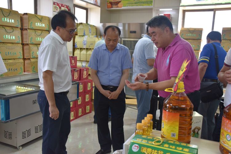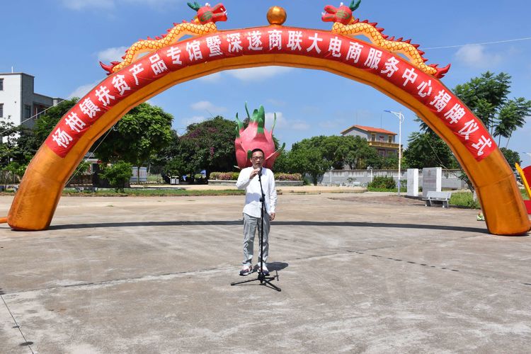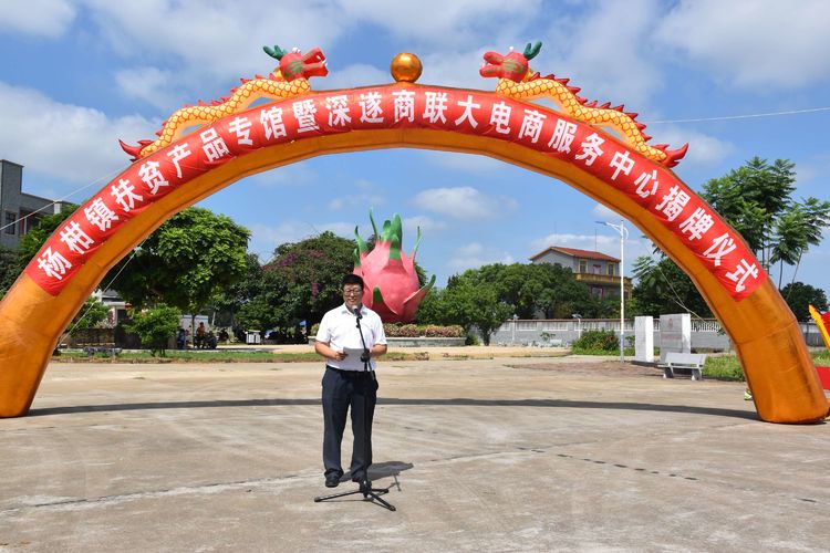 2021年5月17日上午,楊柑鎮(zhèn)扶貧產(chǎn)品專館暨深遂商聯(lián)大電商服務中心揭牌儀式在遂溪縣楊柑鎮(zhèn)布政村委會布政堂村舉行。遂溪縣政協(xié)副主席李和清,深圳遂溪商會會長、深圳市周鼎勝投資有限公司董事長陳恩玉,深圳遂溪商會名譽會長蘇成和,深圳遂溪商會名譽監(jiān)事長周瓊,遂溪縣科工貿(mào)局局長陳波,遂溪縣委統(tǒng)戰(zhàn)部副部長、縣工商聯(lián)黨組書記、縣總商會主席陳尚,楊柑鎮(zhèn)黨委書記羅明秋,楊柑鎮(zhèn)鎮(zhèn)黨委副書記、鎮(zhèn)長蔣養(yǎng),鎮(zhèn)黨委副書記袁偉強以及深圳遂溪商會30多名會員和縣農(nóng)業(yè)農(nóng)村局、縣科工貿(mào)局等有關(guān)單位領(lǐng)導,楊柑鎮(zhèn)各村(社區(qū))黨組織書記等共約120多人參加揭牌儀式。