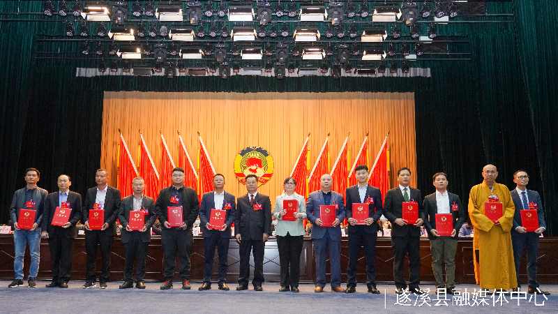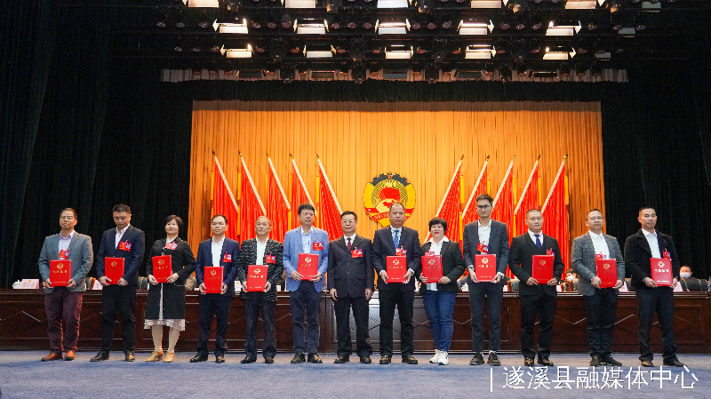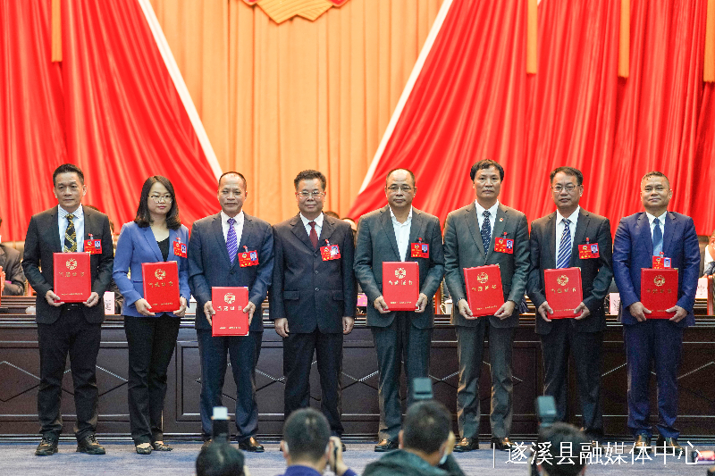 遂溪縣政協(xié)主席潘汝權(quán)為新當(dāng)選的政協(xié)第十一屆遂溪縣委員會(huì)副主席黃小平、姚博允、李和清、陳麗珺、龐佑仔、李實(shí)秋,秘書長(zhǎng)郭志誠(chéng),及王睿等42名常務(wù)委員頒發(fā)當(dāng)選證書。
