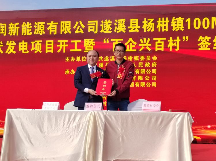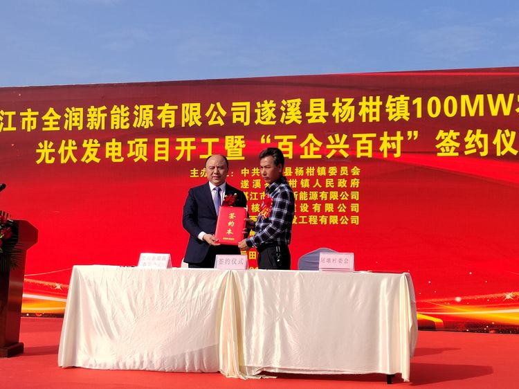 在當(dāng)天的開工儀式上,全潤新能源有限公司還與乾留村委會(huì)、尾墩村委會(huì)、后田村委會(huì)及涉及項(xiàng)目用地的10個(gè)自然村簽訂“百企興百村”幫扶協(xié)議書。全潤新能源有限公司將以捐資、助學(xué)、修建基礎(chǔ)設(shè)施、產(chǎn)業(yè)發(fā)展等多種形式,幫助涉及項(xiàng)目用地的村委會(huì)和自然村發(fā)展壯大村級集體經(jīng)濟(jì)和美麗鄉(xiāng)村建設(shè),助力鄉(xiāng)村振興戰(zhàn)略實(shí)施。