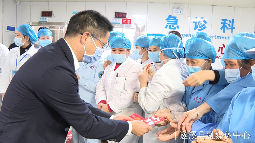 在廣東醫(yī)科大學附屬醫(yī)院遂溪醫(yī)院,駱華慶、陳升一行看望慰問值班的醫(yī)護人員,感謝他們堅持奮戰(zhàn)在疫情防控第一線,始終為保障全縣人民生命安全和身體健康默默奉獻。