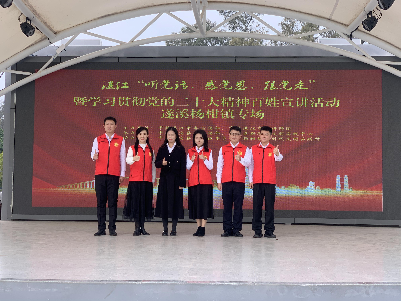 2023年1月5日上午,由市委宣傳部、市委講師團(tuán)主辦,縣委宣傳部、縣新時(shí)代文明實(shí)踐中心承辦,中共楊柑鎮(zhèn)委員會(huì)、楊柑鎮(zhèn)新時(shí)代文明實(shí)踐所協(xié)辦的“湛江‘聽黨話、感黨恩、跟黨走’暨學(xué)習(xí)貫徹黨的二十大精神百姓宣講活動(dòng)遂溪楊柑鎮(zhèn)專場”在楊柑鎮(zhèn)楊柑中學(xué)德育園舉行,鎮(zhèn)黨員干部、群眾等60余人參加活動(dòng)。