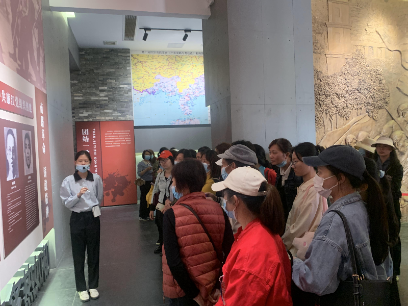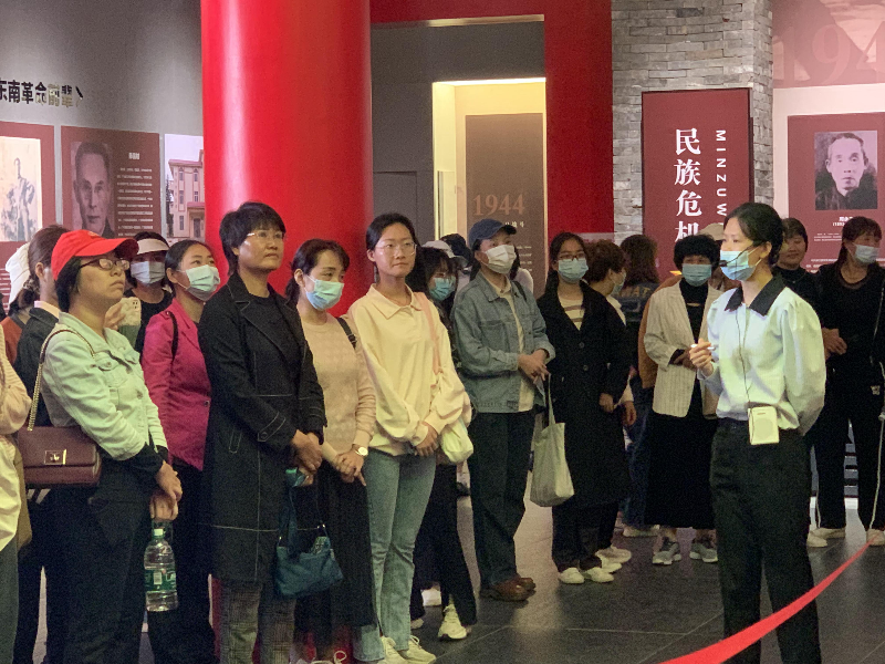 (干部們認(rèn)真聆聽講解員講解)