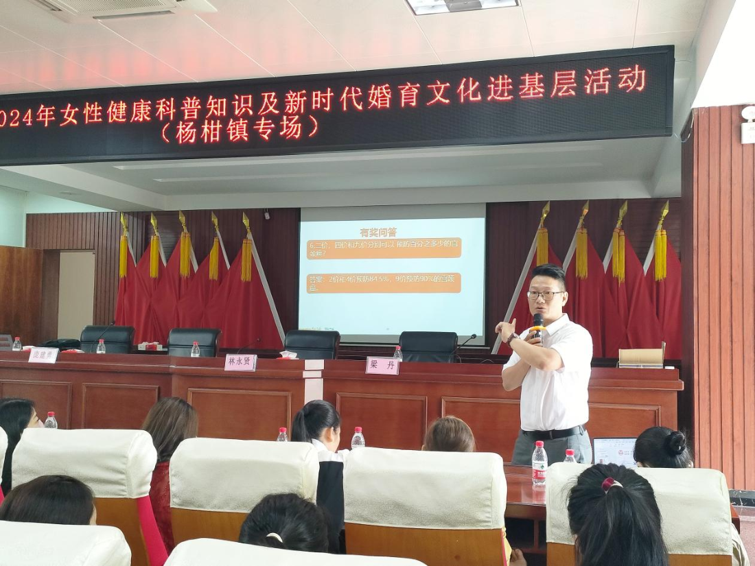 為了廣泛普及女性健康科普知識(shí),傳播婚育新風(fēng),引導(dǎo)廣大婦女樹(shù)立健康理念及樹(shù)立正確的家庭教育觀,進(jìn)一步弘揚(yáng)好家風(fēng)好家教,同時(shí)提升廣大群眾的交通安全意識(shí),守護(hù)群眾的生命安全,以家庭健康和諧促進(jìn)社會(huì)和諧,助力健康遂溪、平安遂溪建設(shè)。6月5日上午,楊柑鎮(zhèn)婦聯(lián)組織舉辦2024年女性健康科普知識(shí)及新時(shí)代婚育文化進(jìn)基層活動(dòng)暨道路交通安全教育宣講會(huì)。鎮(zhèn)村在職婦女干部、鎮(zhèn)村婦聯(lián)執(zhí)委、巾幗志愿者、女家長(zhǎng)等110余人參加講座。