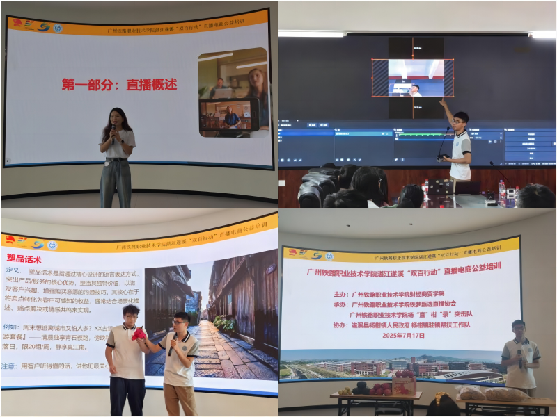 本次直播電商培訓(xùn)班為期3天,采用“專題授課+實(shí)操演示+現(xiàn)場(chǎng)示范”模式。內(nèi)容深度聚焦直播全流程,涵蓋直播各環(huán)節(jié)及數(shù)據(jù)分析、售后與客戶管理等關(guān)鍵領(lǐng)域。授課團(tuán)隊(duì)由廣州鐵路職業(yè)技術(shù)學(xué)院經(jīng)驗(yàn)豐富、專業(yè)過硬的師生組成,結(jié)合楊柑鎮(zhèn)實(shí)際,為學(xué)員量身定制實(shí)用課程,助力其快速掌握技能,培養(yǎng)專業(yè)人才,推動(dòng)楊柑鎮(zhèn)農(nóng)村電商發(fā)展。