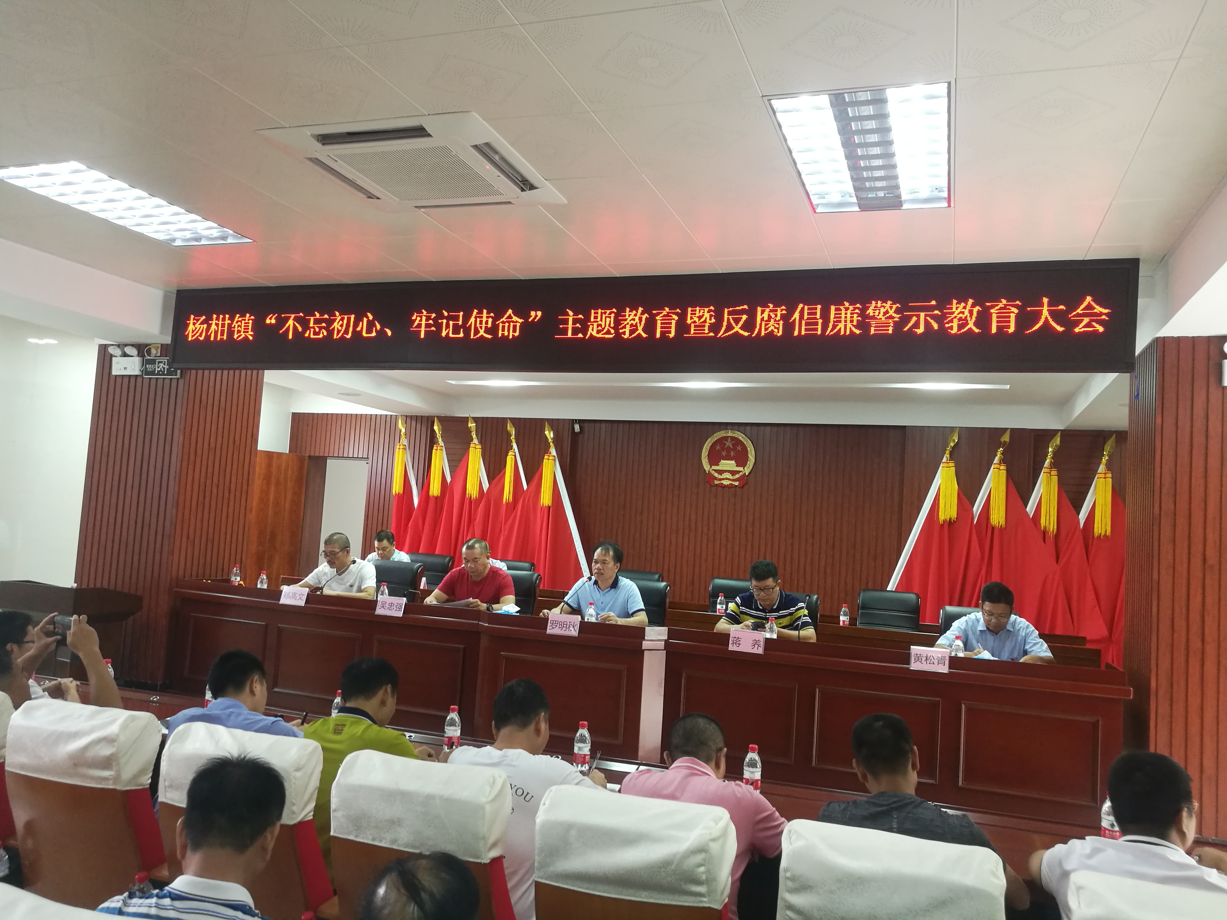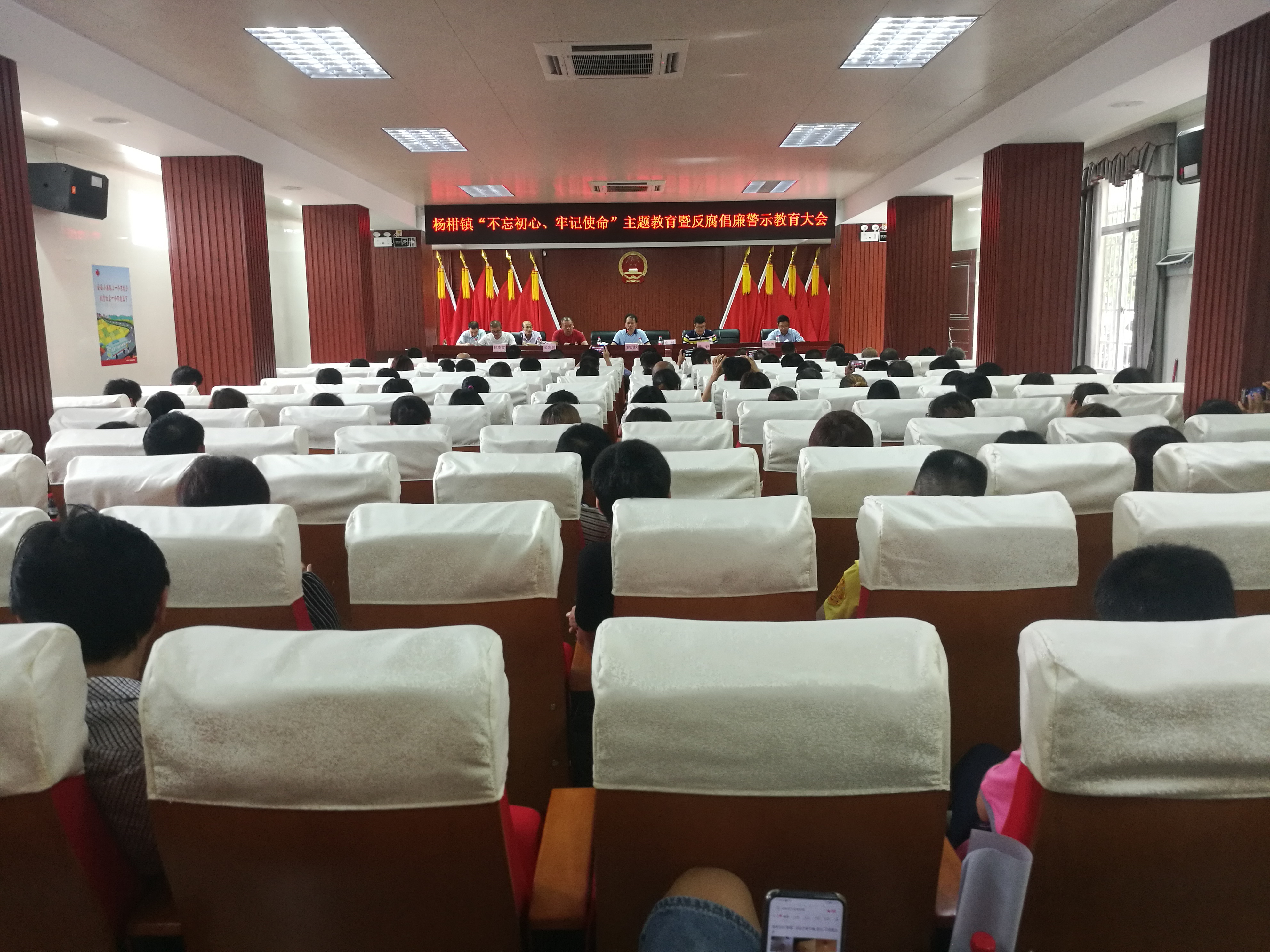 2019年9月5日,楊柑鎮(zhèn)在鎮(zhèn)政府第一會議室召開“不忘初心、牢記使命"主題教育暨反腐倡廉警示教育大會。鎮(zhèn)全體干部職工、各機關單位負責人以及各村(居)黨支部書記、省市縣各級駐村工作隊長、第一書記、“十百千”回鄉(xiāng)干部等共180余人參加會議。會議由鎮(zhèn)黨委書記羅明秋主持。